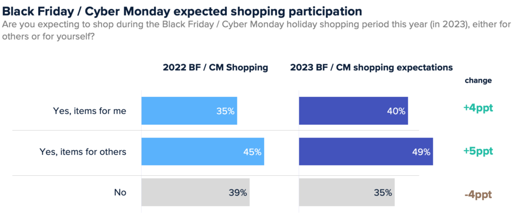 4. More shoppers will make purchases on Black Friday and Cyber Monday in 2023 than in 2022.