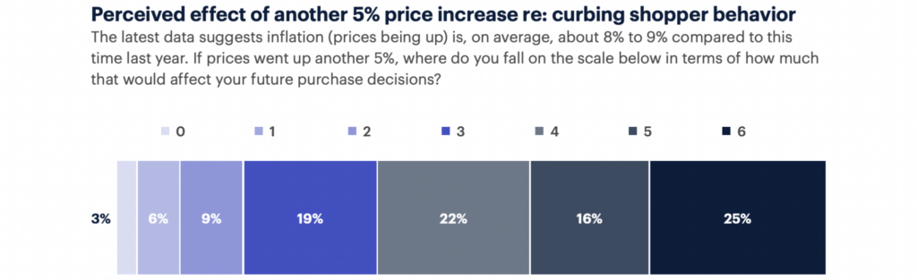 5. If the cost of goods and services were to increase by another 5%, all but 3% of consumers say the added cost would affect their future purchase decisions.