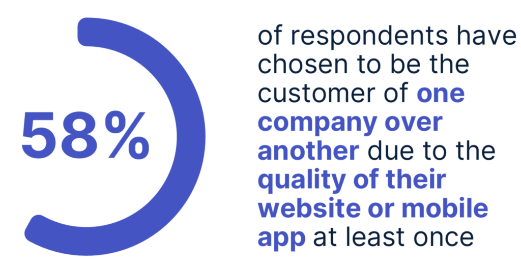 In fact, the majority of consumers (58%) say that at least once, they have chosen a competitor due to the lack of quality of a brand website or mobile app, while a similar share (51%) say that in the past, they have stopped being a customer of a company because they encountered too many difficulties using their website or mobile app.